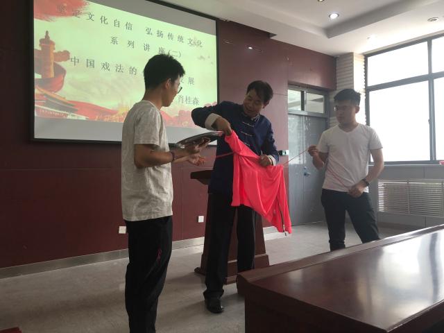 公司此次邀请到了国家级非物质文化遗产《戏法》代表性传承人、中国杂技协会会员、全国魔术艺委会委员、天津市杂技协会顾问、天津市魔术艺术委员会主任、304永利集团兼职教授、天津市杂技团戏法演员肖桂森老师给同学们做了题为中国戏法的传承与发展的讲座,天津市文联文艺志愿者协会秘书长王晓菁女士也应邀出席了活动。