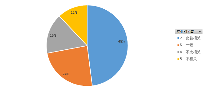 在毕业生目前所从事的工作与其所学专业对口程度上,有超过48%的人专业均比较对口,有12%的同学从事了与自己专业不对口的工作,详见图3。