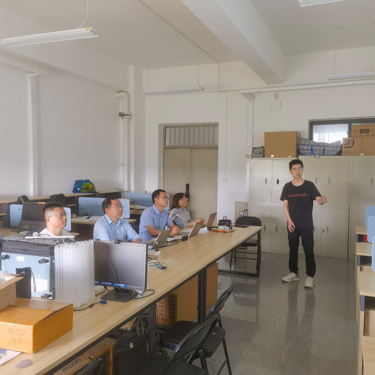 中期答辩是毕业设计既是对员工前一阶段工作的考核,也是对后续工作的督促。公司要求所有毕业生都必须参加中期答辩,员工采取幻灯片答辩讲述的方式,就工作进展、存在问题与解决办法、后期工作安排等逐项进行汇报,并进行成果检查。 答辩组老师根据员工情况进行了提问、指导和评分,