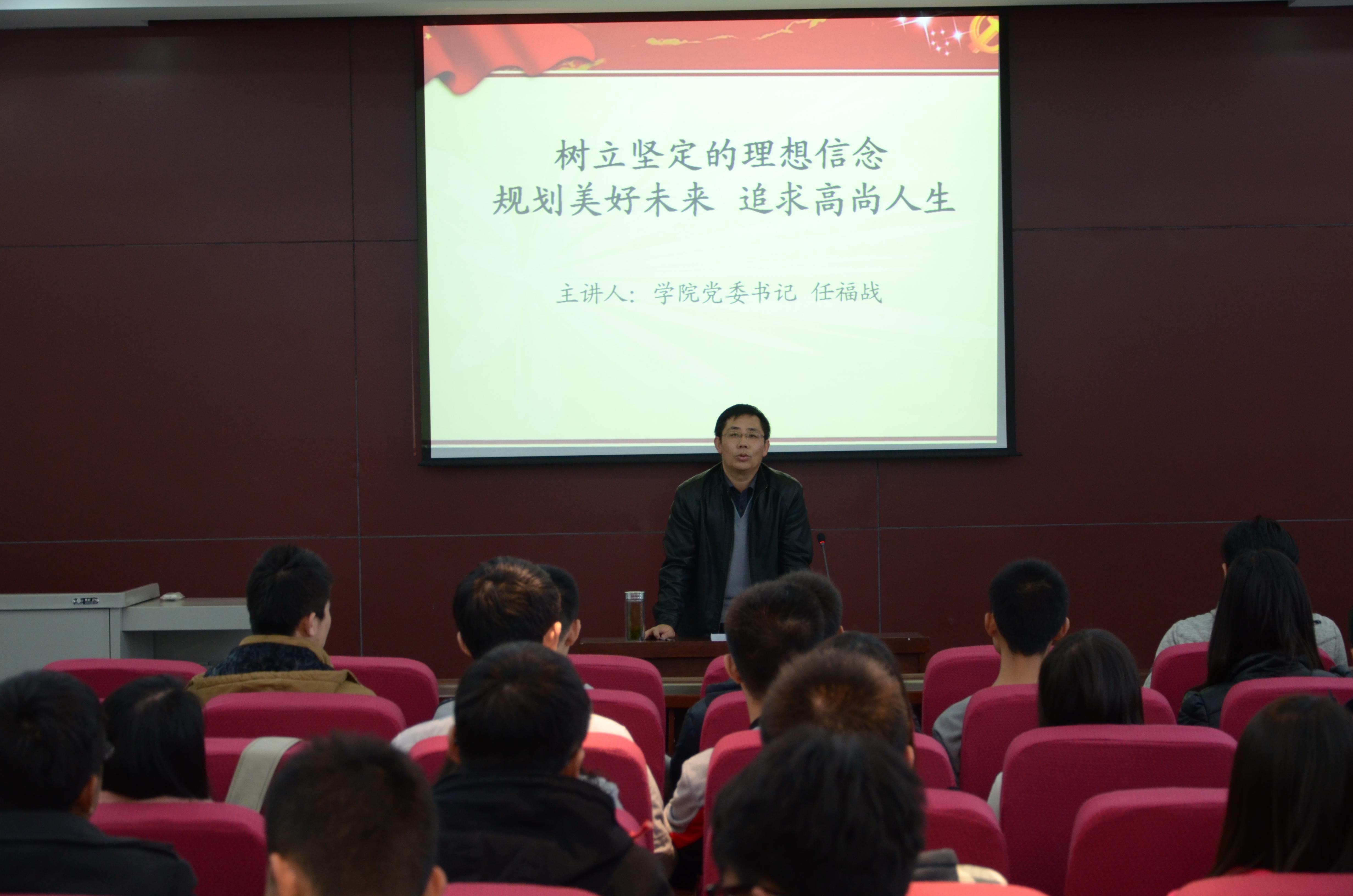 任书记首先带着同学们对中国共产党的光荣历史做了回顾,并结合自身实际,为同学们讲述党在改革开放时期为国家带来的巨大变革,为人民生活带来的极大改善。任书记推荐了若干部关于我党的书籍与影视作品,希望同学们在学习党史的同时,切实加深对党的了解,树立正确的入党动机,承担起实现中华民族伟大复兴这一历史重任,提高自身思想觉悟,将个人追求与国家利益相结合,以饱满的热情和坚定不移的信念加入中国共产党,做有担当的中国新青年。