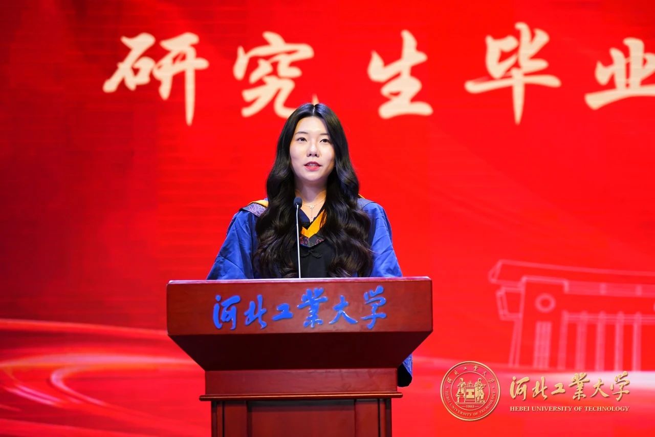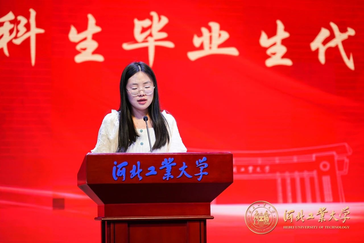 本科毕业生代王心蕊同学和研究生毕业生代表谭畅同学发言。两位优秀的毕业生代表依次上台,分享了自己在校期间的学习、生活感悟,道出了全体毕业生对母校的眷恋、对师长的感恩以及对未来的憧憬。