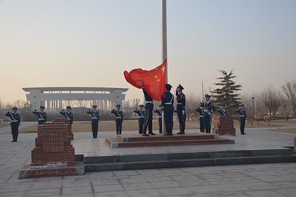 在雄浑的国歌声中,国旗护卫队的队员们踏着矫健的步伐,手擎国旗迈向国旗台,将鲜艳的五星红旗冉冉升起。公司师生庄严肃立,齐声高唱国歌,注视着国旗沐浴清晨的阳光,迎风飘扬。