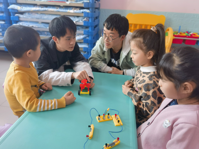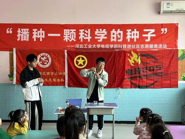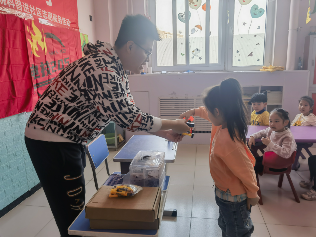 志愿者们跟随社区负责人来到爱心双语幼儿园,志愿者们化身一个个小老师,为小朋友们讲解了串联电路,手摇发电,风力小车,“火山爆发”以及还原反应等有趣的物理化学小实验,小课堂上,孩子们踊跃举手回答问题,积极配合志愿者们完成科普教育。小课堂上孩子们学习到了一些科学小知识,从娱乐中感受到科技的启迪,激发了孩子们对科学的兴趣,营造了热爱科学、崇尚科学的良好社会氛围。