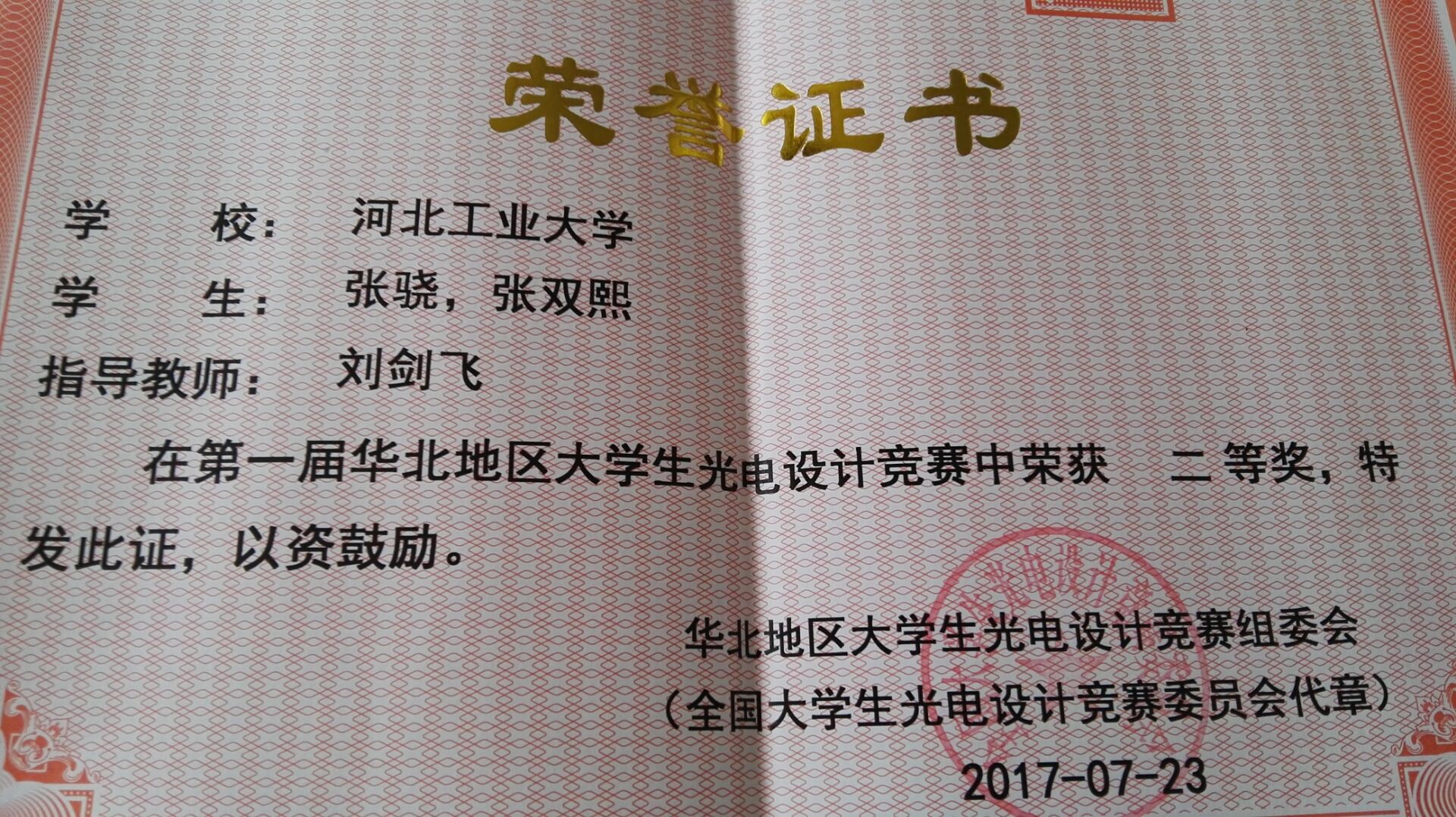 2017年第六届全国老员工光电设计竞赛(华北赛区)暨第一届华北地区光电设计竞赛7月23日在燕山大学进行现场比赛。来自北京理工大学,燕山大学,中北大学,天津工业大学及公司等10余所高校的50余个代表队参加了三个项目的比赛。304永利集团刘剑飞老师指导,张骁、张双熙完成的作品获二等奖。