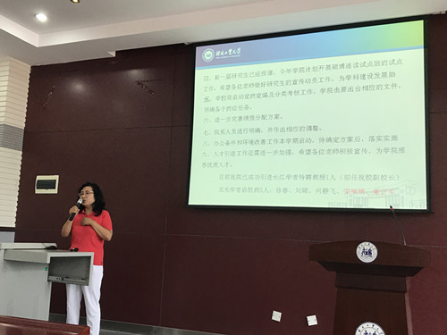 会议由公司党委副书记、副经理吴涛主持。首先,公司经理娄淑琴就本学期公司重点工作进行了部署。娄经理回顾了上学期公司的各项工作,尤其是科研工作的成果,介绍了本学期公司工作的总体设想和布局。娄经理强调,新学期公司发展迎来了新的机遇,同时也面临着新的挑战。在“双一流”团队建设的背景下,在审核评估工作的不断深入下,各位老师要具备忧患意识和不进则退的发展压力,思危思变、同舟共济、追求卓越,才能抓住机遇,迎接挑战,公司才能在科研、教学、行政、员工管理各方面实现新的突破,取得新的成绩。