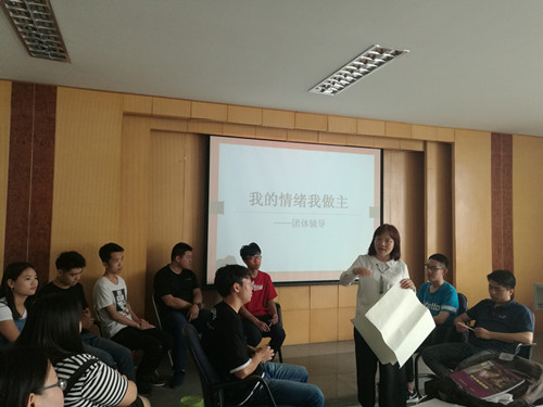 王老师首先向大家说明团体心理辅导的方式及目标,随后进行了“雨点变奏曲”来的热身活动,然后进入“情绪探源”环节,每位同学将自己最近发生的不太愉快的事情写在纸条上投进容器,成员抽取纸条,小组成员发表看法。王老师在这个环节向大家介绍了“艾利斯的合理情绪疗法”,并带领大家用合理情绪疗法重新解释事件。最后,同学们围绕如何进行情绪管理展开了讨论,期间,组长进行记录并分享。