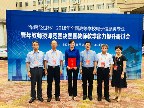 本次活动预赛从2018年1月份开始,历时8个月,全国100多所高校,400多名教师报名,最终决出分赛区一等奖、二等奖、三等奖。决赛会务工作由304永利集团组织承办,决赛分四组同时进行,获得各赛区一、二等奖的58位参赛青年教师抽签确定比赛顺序和内容,贴号码牌参加比赛。由国家级教学名师、省级教学名师和教指委委员组成评委团,国家级教学名师、西安电子科技大学傅丰林教授担任评委会主任,从教学内容、教学组织、教学手段、微课与教学内容结合、教学艺术、特色与效果、教案与大纲等方面,对参赛教师的20分钟现场教学进行盲评,现场亮分。每组第一名再进行“华晟经世杯”夺杯赛,现场抽签决定比赛顺序和内容,由专家评委和观众评委共同打分,当场亮分,决出特等奖1人,获得“华晟经世杯”。经过激烈角逐,最终评选出特等奖“华晟经世杯”1名,一等奖11名,二等奖18名,三等奖28名。其中,公司李薇薇老师获一等奖;郭艳菊老师、刘翠响老师和武睿老师获二等奖。