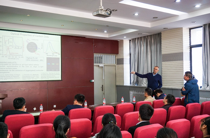 会上徐庶老师介绍了公司和学科发展情况。Andrey Rogach教授和各来访学者对各自科学研究方向和内容进行了介绍,展示了各类新型微纳光电材料和光伏、LED、催化、生物传感和分析等先进光电器件的最新前沿进展,并就器件和材料中的关键问题和挑战进行了讨论。会上员工踊跃发言,和各来访学者进行了深入细致的交流。