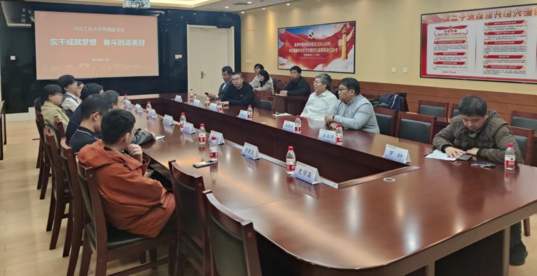 讲座结束后,曹俊忠与电子信息工公司教师代表进行座谈。座谈会上,曹俊忠与青年教师代表就通信技术、行业发展等进行了深入交流。老师们深受启发,纷纷表示,将会把实干奋斗的精神带到实际工作中,立志为公司发展贡献自己的青春力量!