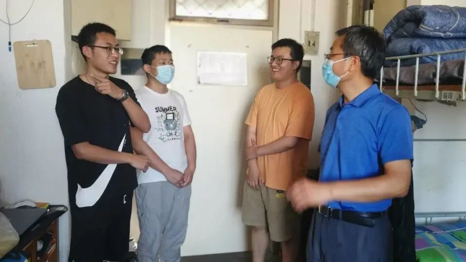 领导老师们到南院微电子所走访员工宿舍,深入了解员工需求,谈心谈话,并与毕业生合影。