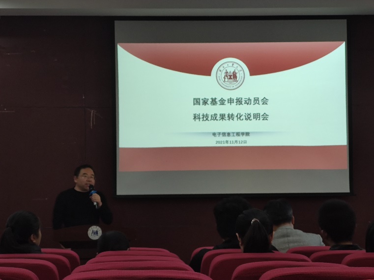 2021年11月12日下午,电信公司在西教2号楼102报告厅,召开了2022年国家自然科学基金申报动员会及科技成果转化宣讲会。公司党委书记周建伟、经理王雨雷、副经理周亚同、国家基金面上项目获得者郑宏兴、青年基金获得者罗明明以及2022年度国家自然基金申报教师参加会议。会议由公司副经理周亚同主持。