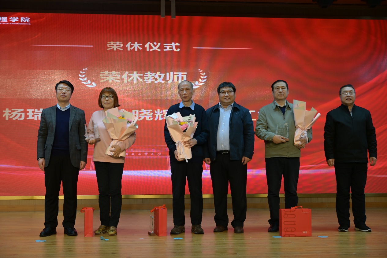 颁奖仪式后,进行了退休教师荣休仪式。校工会主席赵全明、公司党委书记赵其波、经理王雨雷为荣休教师杨瑞霞、徐晓辉、唐红梅颁发奖杯并献花。
